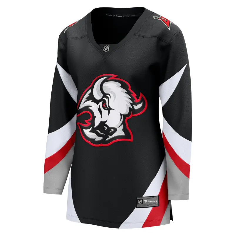 Naisten Buffalo Sabresin Fanatics-pelipaita, musta, Premier League -sarjan irtonumerolla.