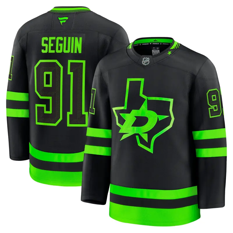 Dallas Starsin Tyler Seguinin naisten fanatics-pelipaita kaudelle 2020/21 ja sen vaihtoehtoiselle Premier League -pelaajalle.