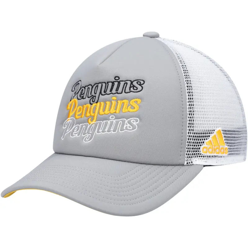 Naisten adidas harmaa/valkoinen Pittsburgh Penguins Foam Trucker Snapback -lippis