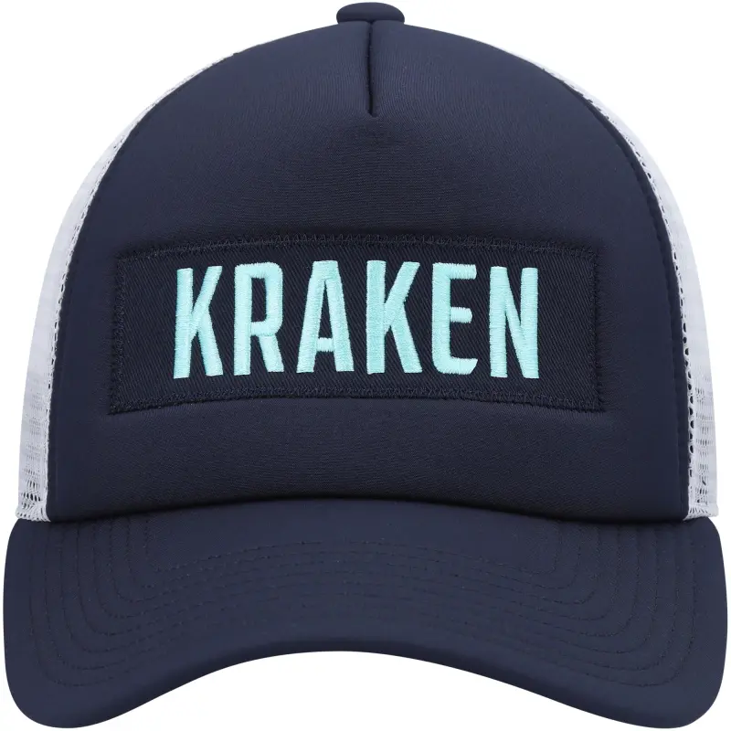 Miesten adidas Deep Sea Blue/White Seattle Kraken Team Plate Trucker Snapback -lippis