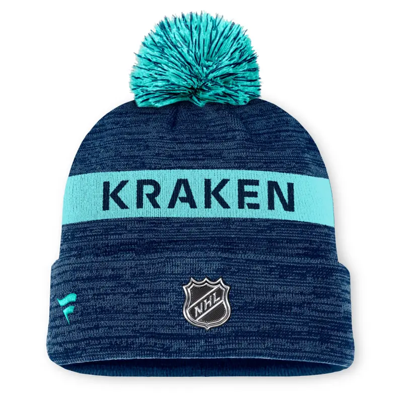 Nuorten syvänmerensininen Seattle Kraken jacquard-tupsullinen neulepipo tupsulla