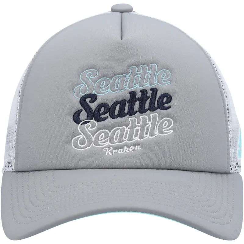 Naisten adidas harmaa/valkoinen Seattle Kraken Foam Trucker Snapback -lippis