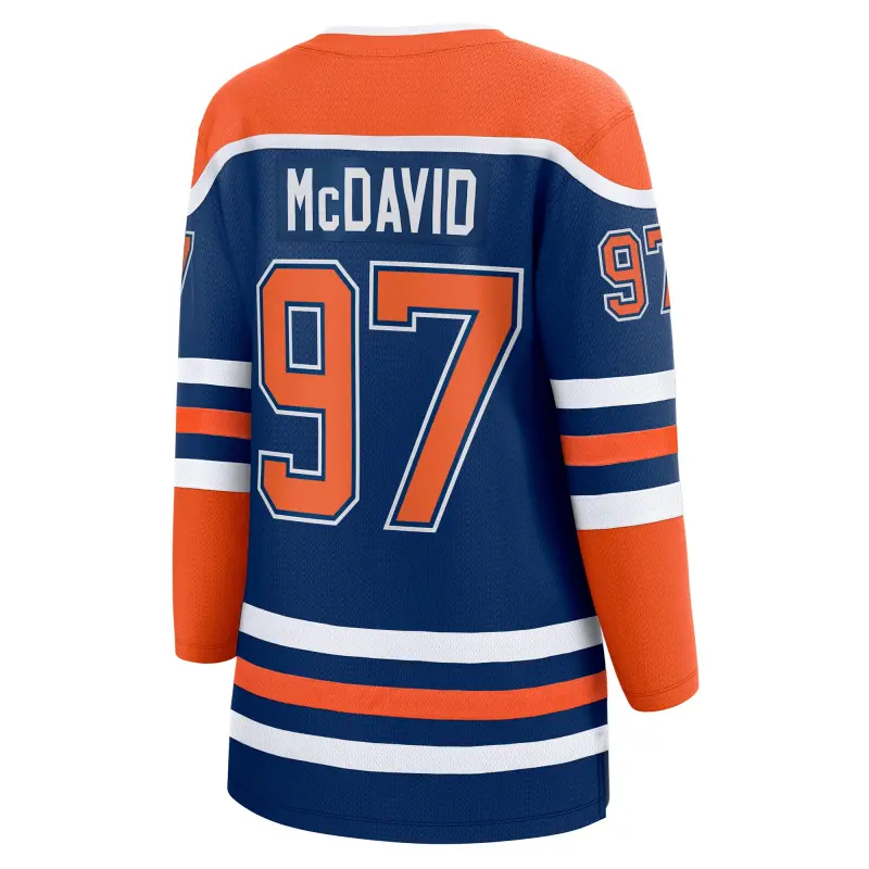 • You can experience the same excitement you feel while watching the Edmonton Oilers play every time you put on this Connor McDavid Premier Breakaway Player Jersey from Fanatics. This exclusive piece of gear features bold colors and graphics, modeled after the jersey your favorite player wears, to let everyone know you're a devout fan. The fabric technologies built into this Edmonton Oilers jersey also ensure you stay comfortable through every game this season.