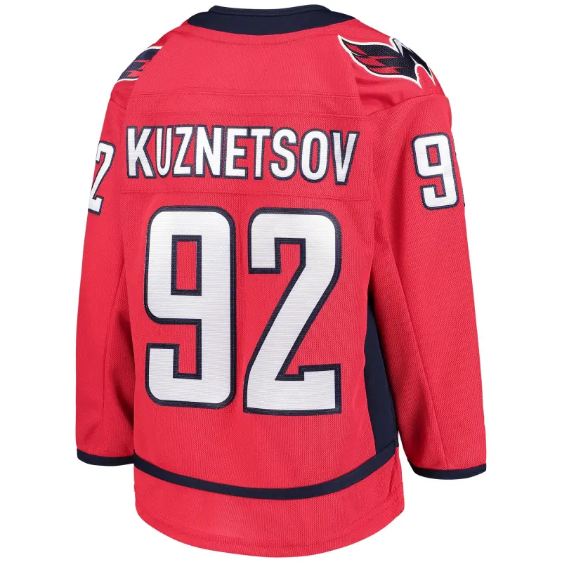 Please Note: This product ships directly from the USA. Showcase your youngster's one-of-a-kind swagger and budding hockey fandom with this Washington Capitals Evgeny Kuznetsov Home Premier Player jersey. This piece of gear is just what your kiddo needs for their game day collection. This unique jersey will be a staple in your young fan's Washington Capitals wardrobe, with its bold design and crisp team graphics.